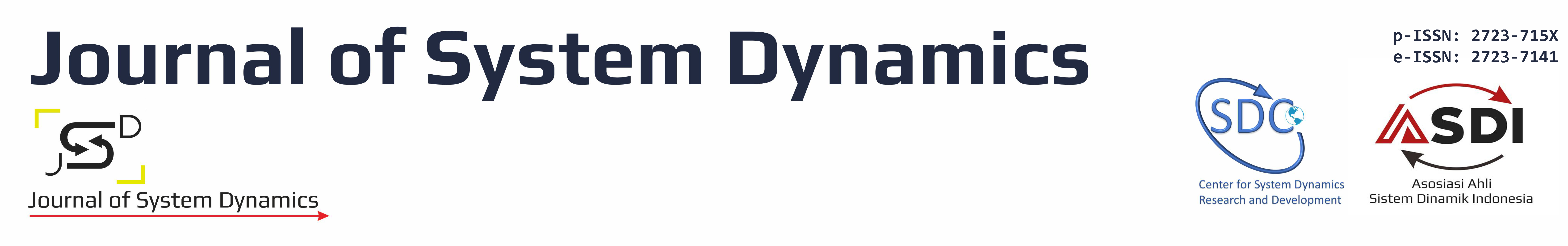 Journal of System Dynamics (JSD) is a publication media for original manuscripsts related to Systems Modelling and Sciences written in bahasa Indonesia or in English.